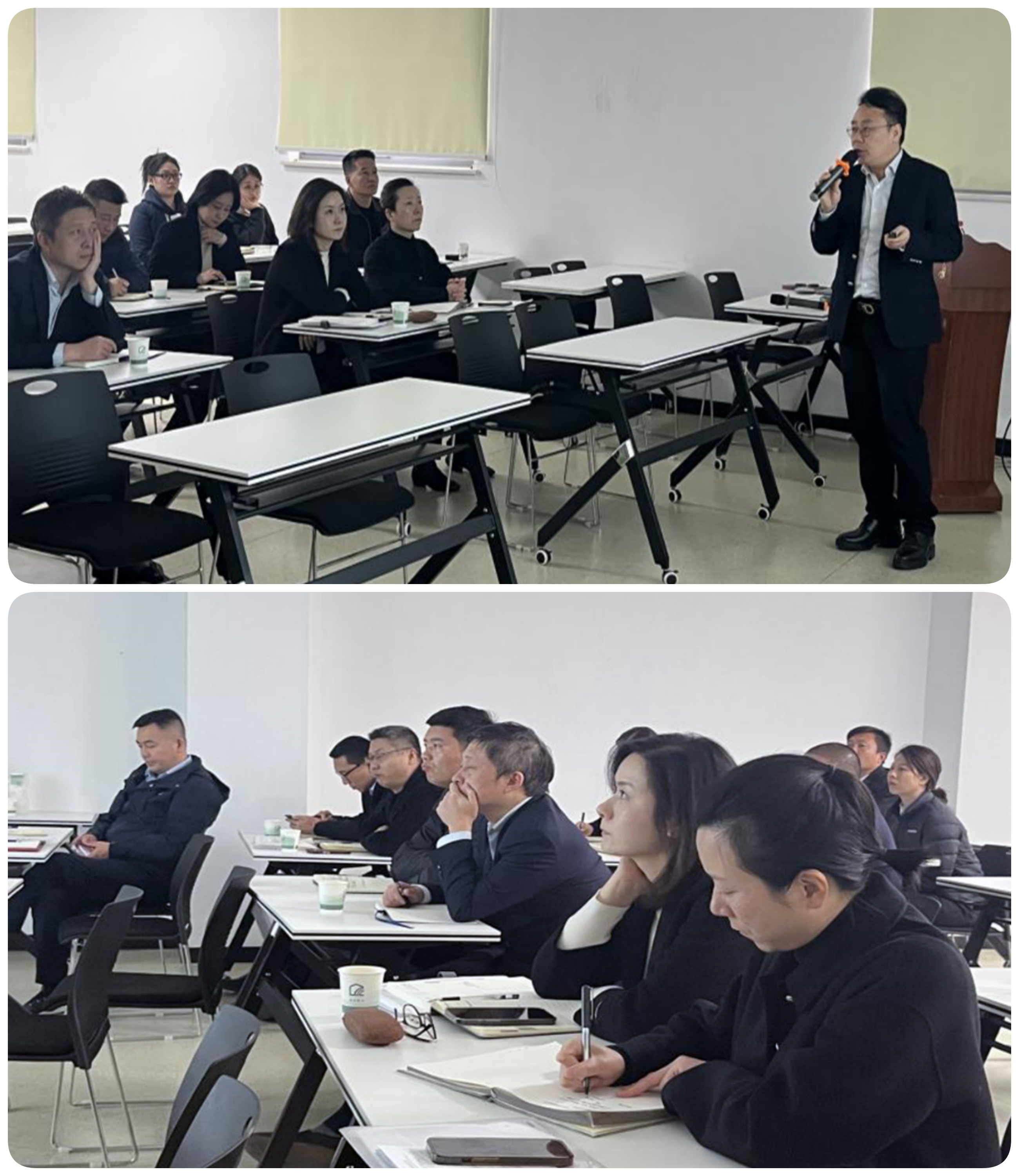 随后,物业公司杨西山总经理以《如何做一名合格的项目经理》为题,紧扣行业变革趋势与公司实践,强调 “抓现场、铸品质” 的核心思路,提出 “关注客户需求、聚焦现场管理、发挥带头作用” 三大核心要求,并以 “不负业主信任,不负公司期待” 的寄语激励全体参训人员。